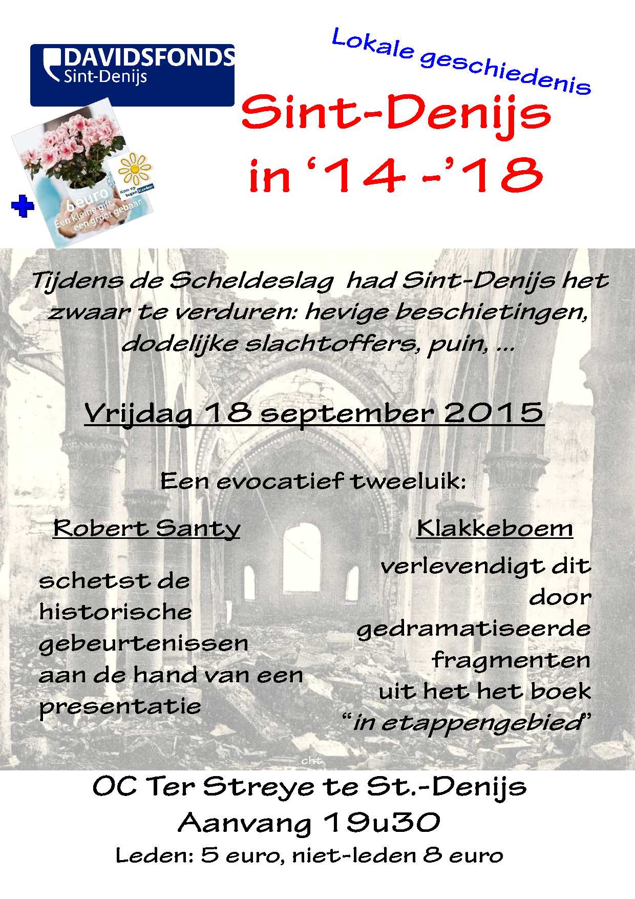 Leden: 5 euro / Niet-leden: 8 euro.uitnodiging Sint Denijs in 14 18 affiche en flyer
